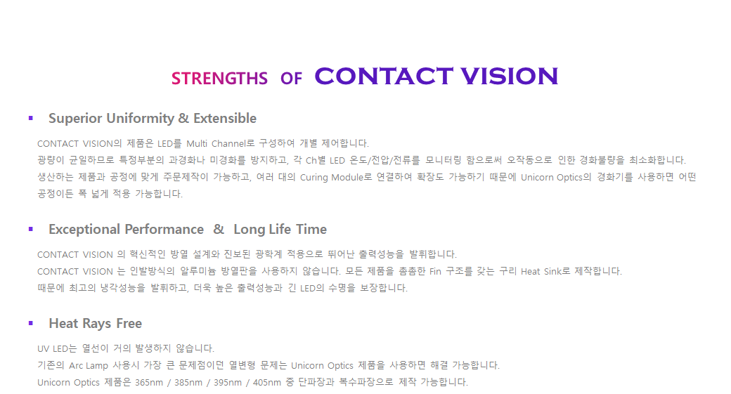 - Optical Intensity Uniformity ± 5% 관리 / Uniform Optical Intensity